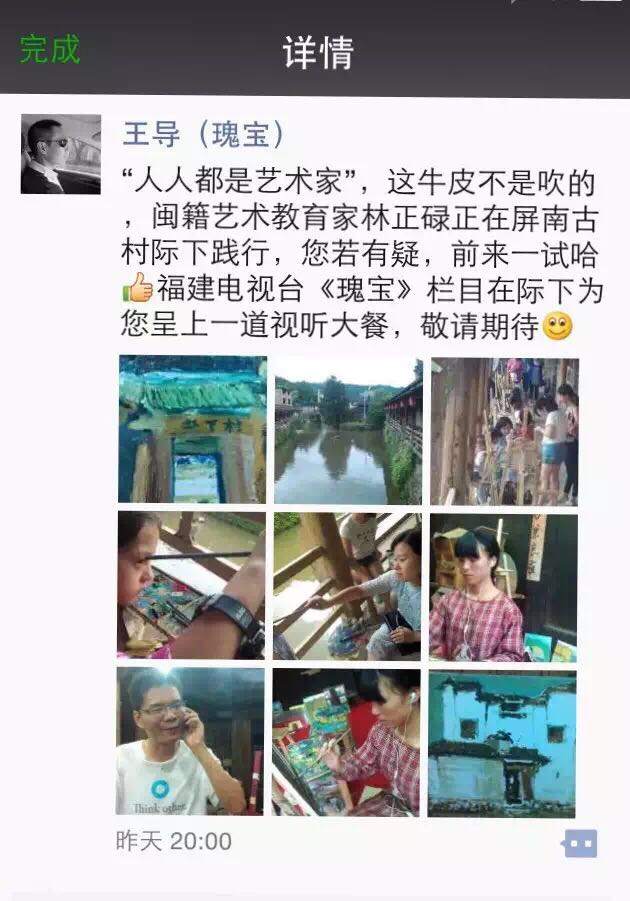 福建《瑰宝》栏目组深入漈下古村专题采访"人人都是艺术家"公益艺术教学,保扩古村人文,发展农村创意产业,打造农村"创客"的事迹。为了证明"人人都是艺术人"艺术教学方法论的先进性,《瑰宝》成员亲自体验验证,这是他们的处女作~他们成功了。