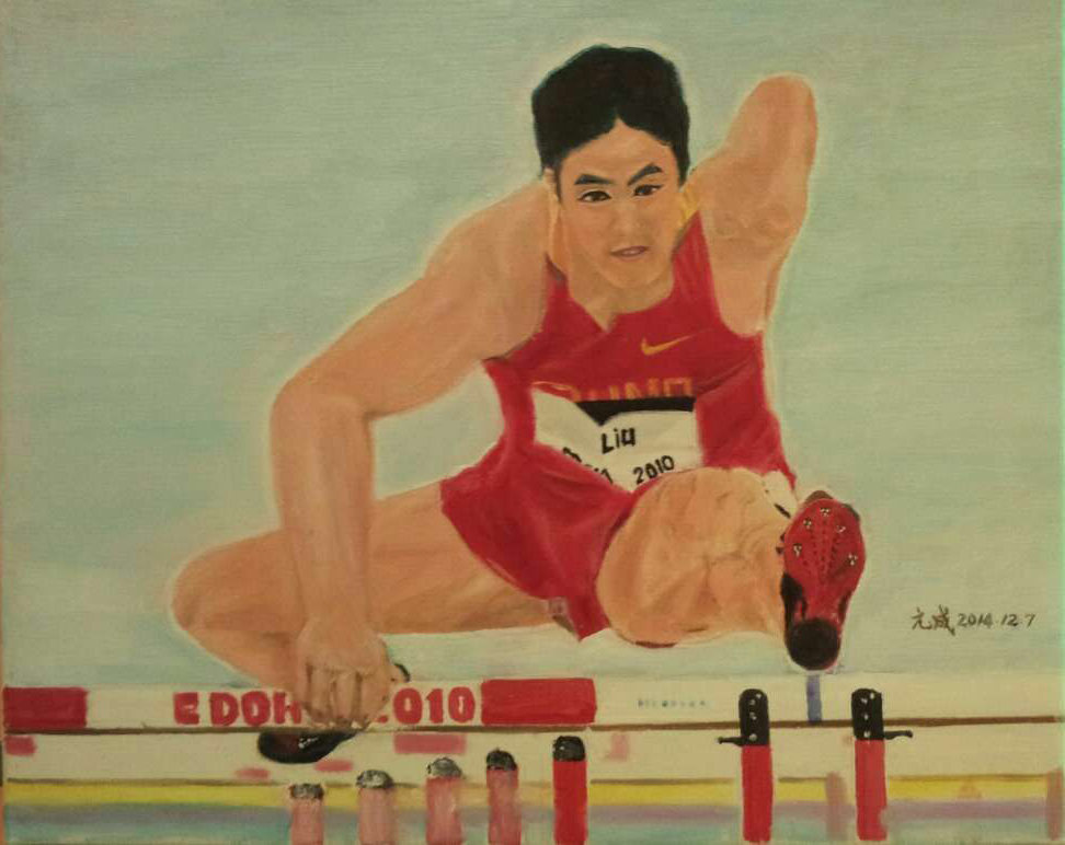 23.【刘翔】40x50cm 布面油画